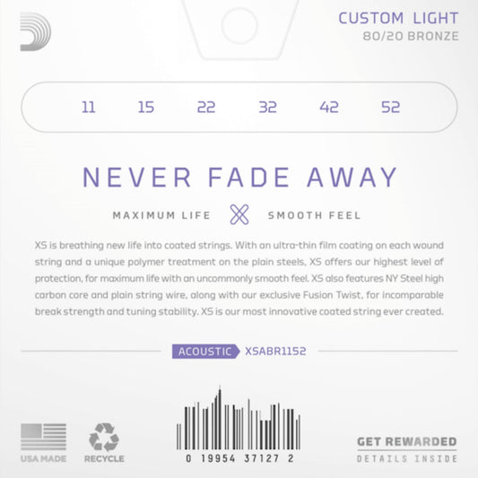 D'Addario XSABR1152 XS 80/20 Bronze Akustik Gitar Teli - Custom Light (11-52)