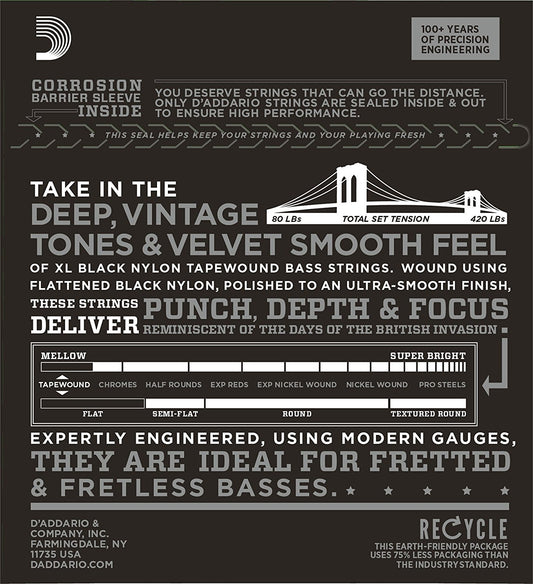 D'Addario ETB92S XL Nylon Tapewound 4 Telli Bas Gitar Teli - Medium (50-105)