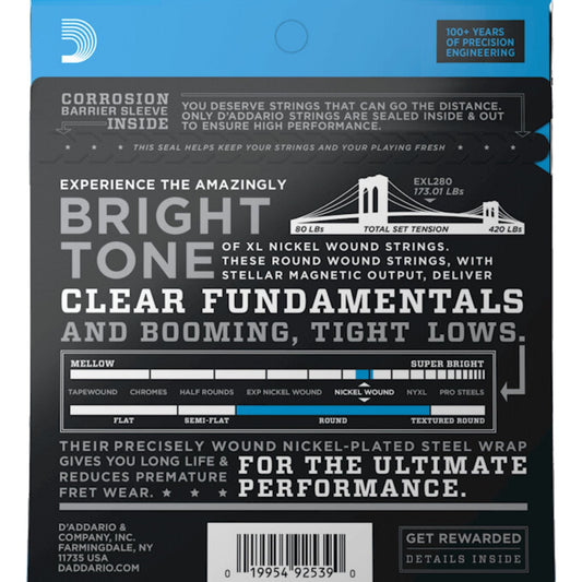 D'Addario EXL280 XL Nickel 4 Telli Bas Gitar Teli - Piccolo Bass (20-52)