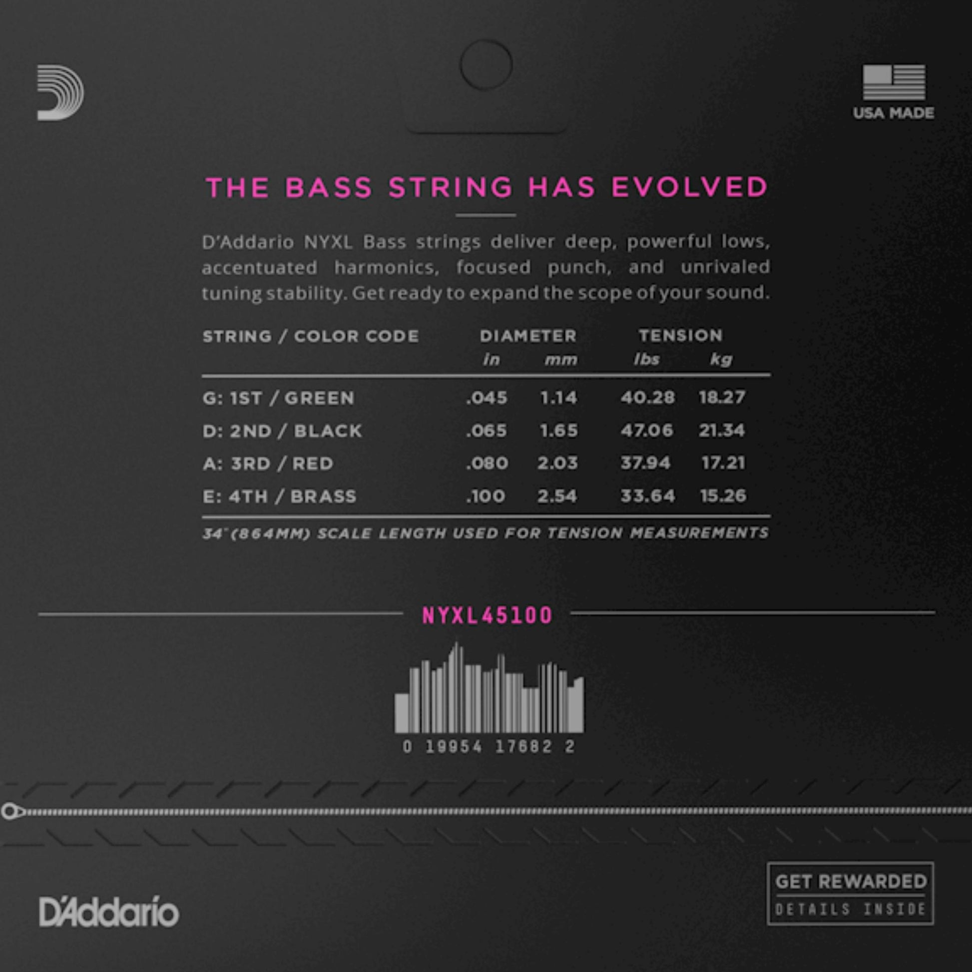 NYXL bas telleri için kullanılan premium nikel kaplı çelik sarma tel, yeniden mühendislik edilmiş çekirdek-sarma oranına sahiptir, daha çok yönlü bir tel sunar ve hala tanıdık bir his sunar, ayrıca önemli harmonikleri vurgular.
