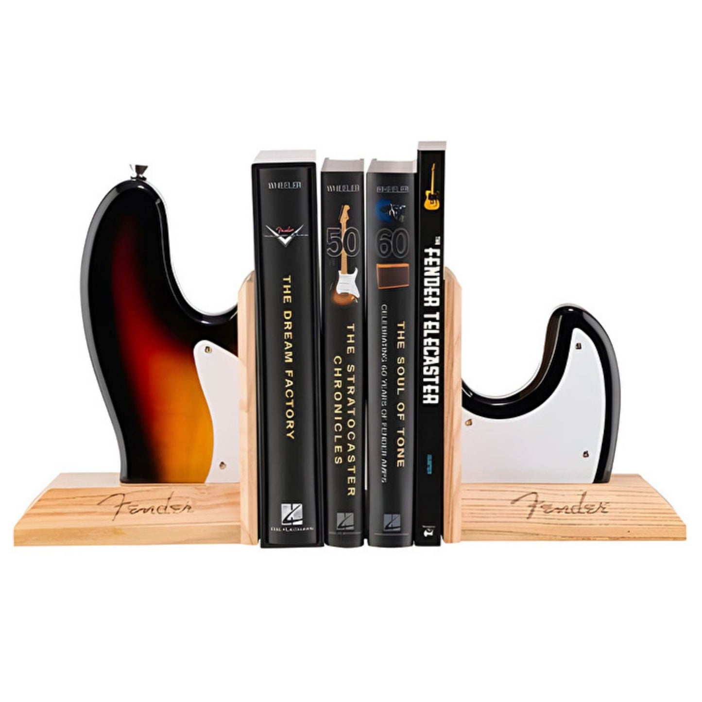 Kişisel çalışma alanınızı şık Fender dekoruyla hareketlendirin ve kütüphanenizi düzgün tutmak için Tele kitap destekleri kullanın; çünkü serinliğin kitabını yazan şirketten geliyor. Her kitap desteği seti, efsanevi gitarlarımız için Corona, Kaliforniya'daki tesisimizde kullanılan aynı malzemelerden üretilmiştir.