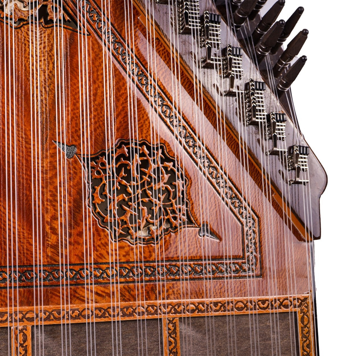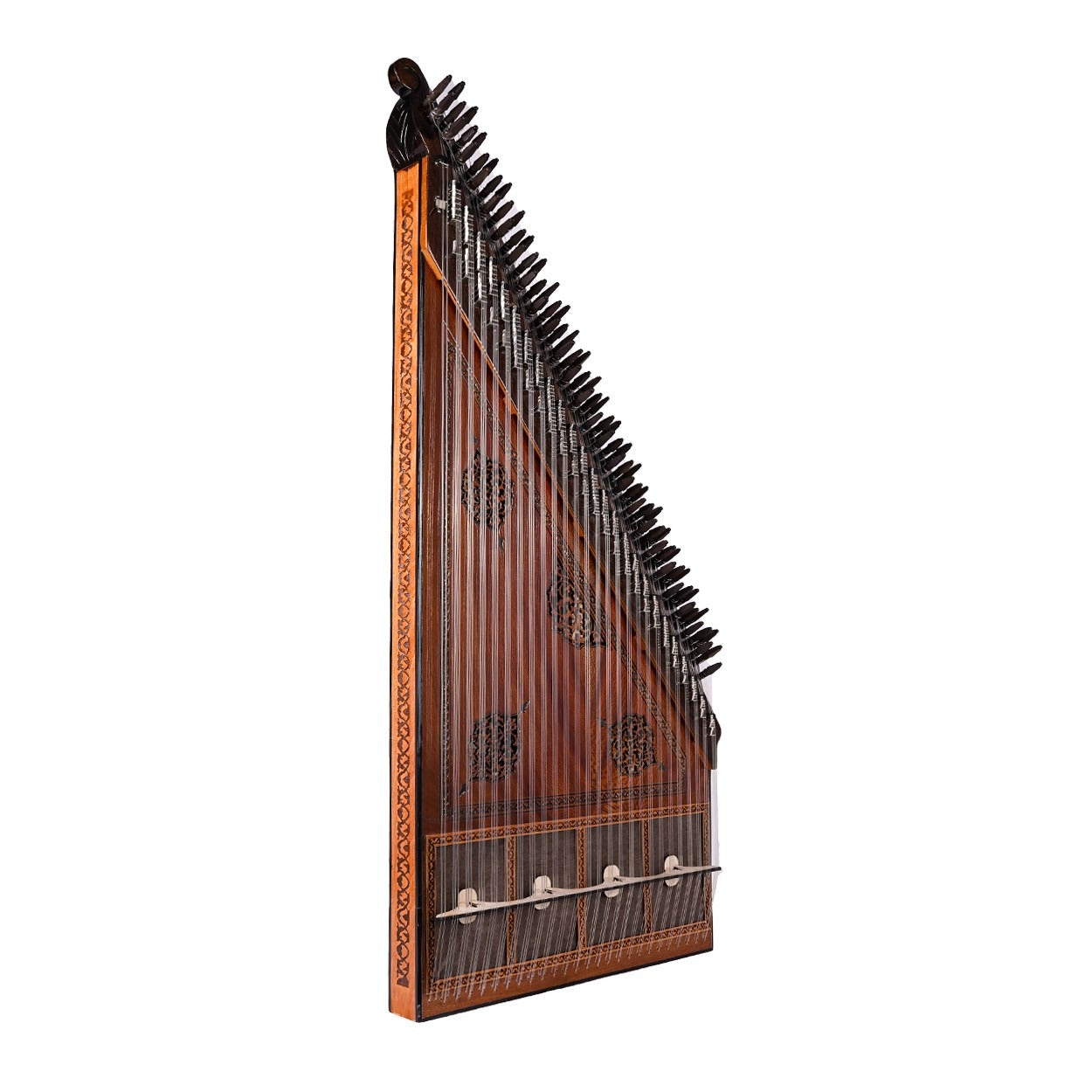 26 perde/ses olarak tasarlanan bir Türk tipi kanun olan 80036, büyüleyici sesi ile sizi etkileyecektir. Çınar ağacı kapağı ve abanoz burguları ile yüksek kaliteli bir ses vermeyi garanti etmektedir.