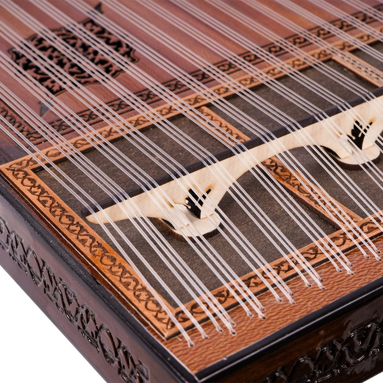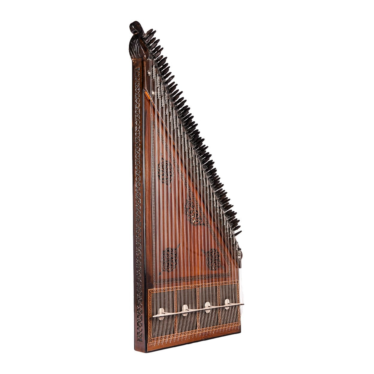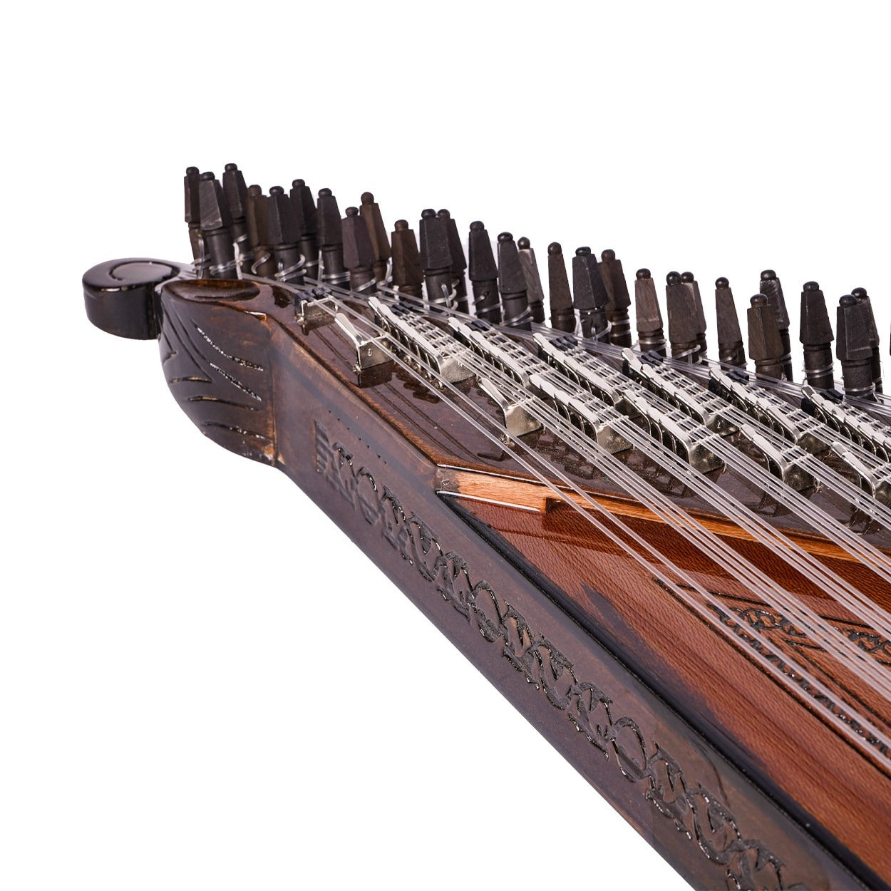 26 perde/ses olarak tasarlanan bir Türk tipi kanun olan 80041, büyüleyici sesi ile sizi etkileyecektir. Çınar ağacı kapağı ve abanoz burguları ile yüksek kaliteli bir ses vermeyi garanti etmektedir.