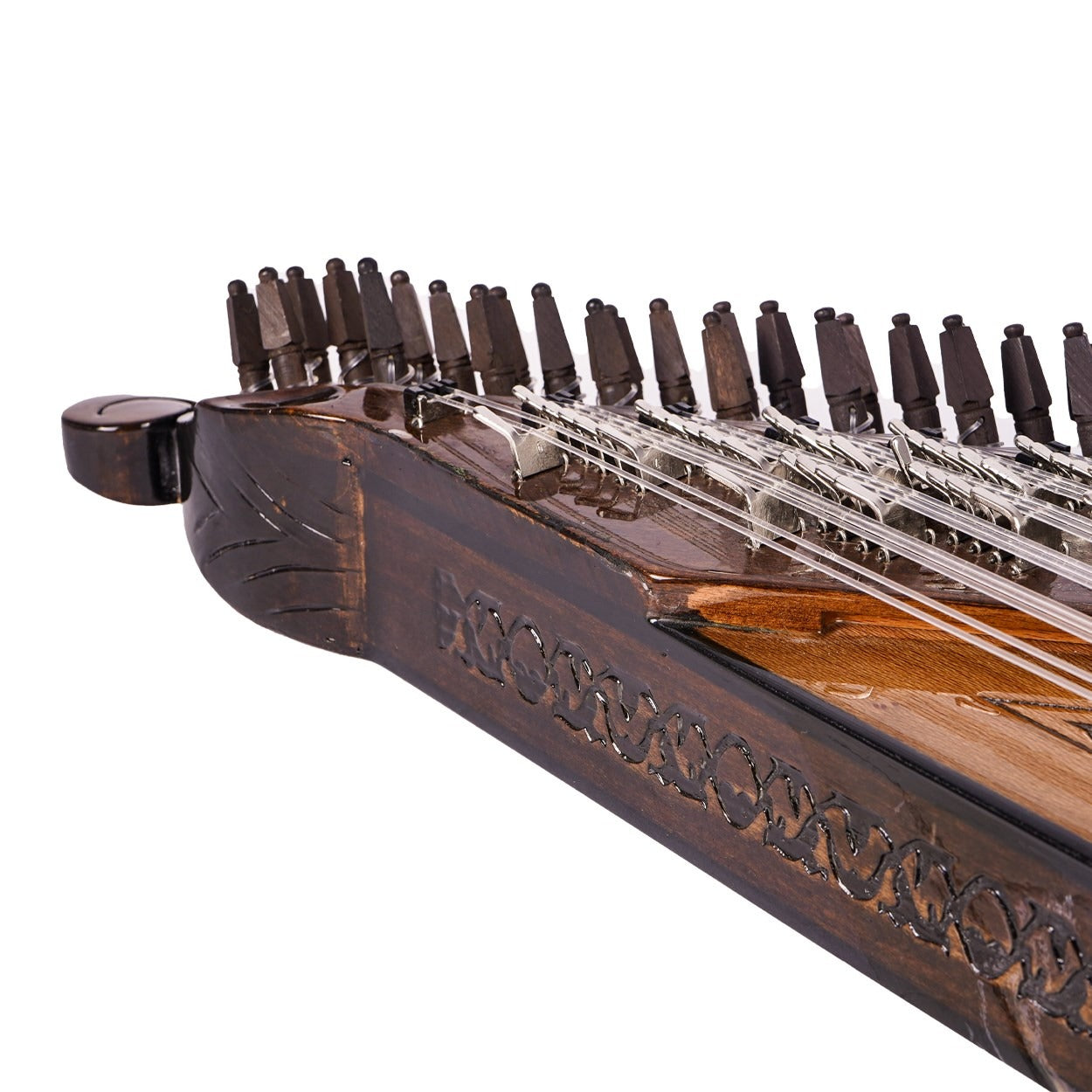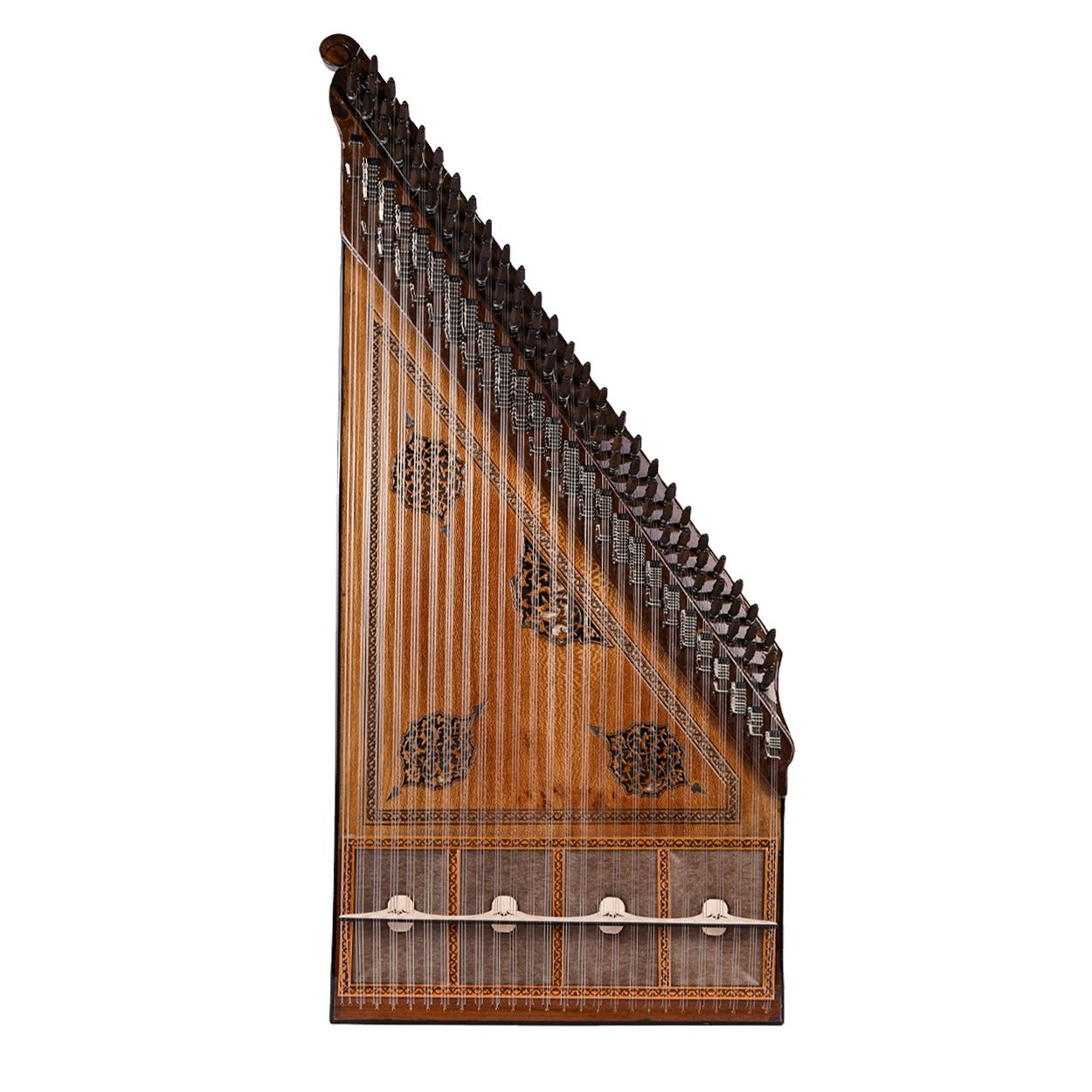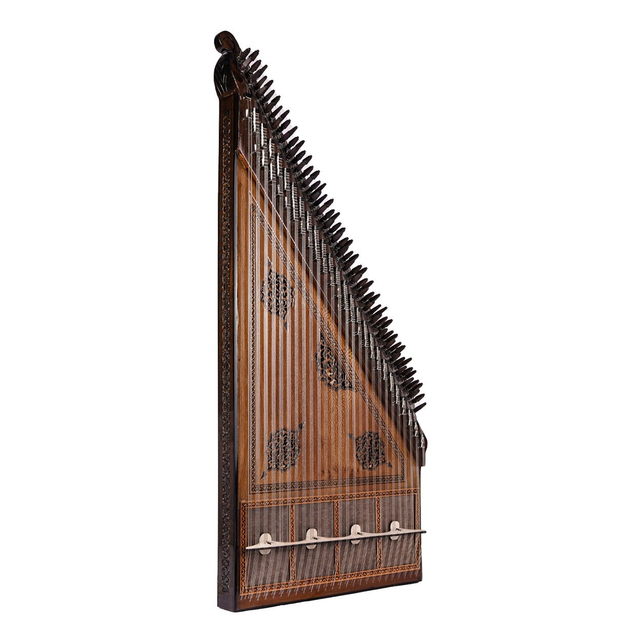 26 perde/ses olarak tasarlanan bir Türk tipi kanun olan 80049, büyüleyici sesi ile sizi etkileyecektir. Çınar ağacı kapağı ve abanoz burguları ile yüksek kaliteli bir ses vermeyi garanti etmektedir.