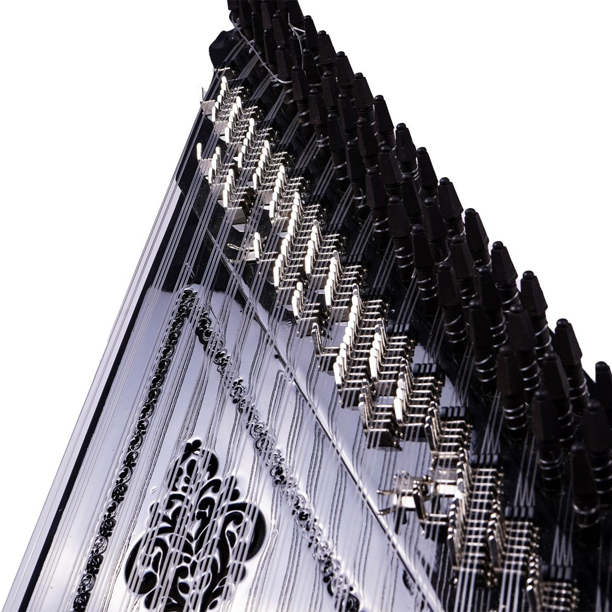 26 perde/ses olarak tasarlanan bir Türk tipi kanun olan 800013, büyüleyici sesi ile sizi etkileyecektir. Çınar ağacı kapağı ve abanoz burguları ile yüksek kaliteli bir ses vermeyi garanti etmektedir.